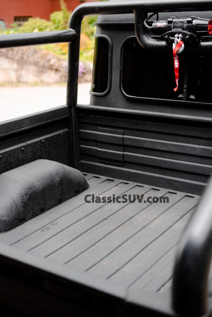 - Winches: Equipped with two Warn winches—one at the front and one at the custom rear roll cage—for maximum off-road recovery.