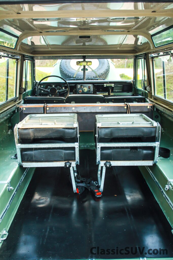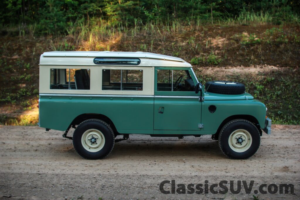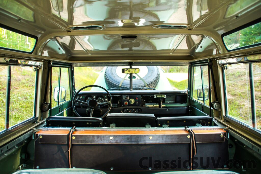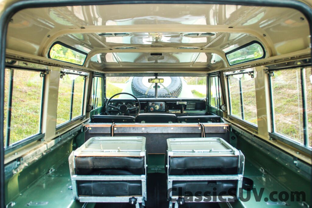 - Exterior: Military frame, Safari roof, Station wagon side windows, Truck cab windows