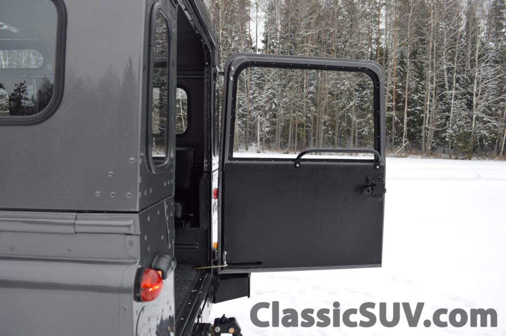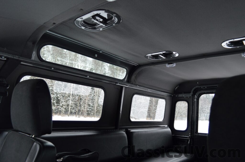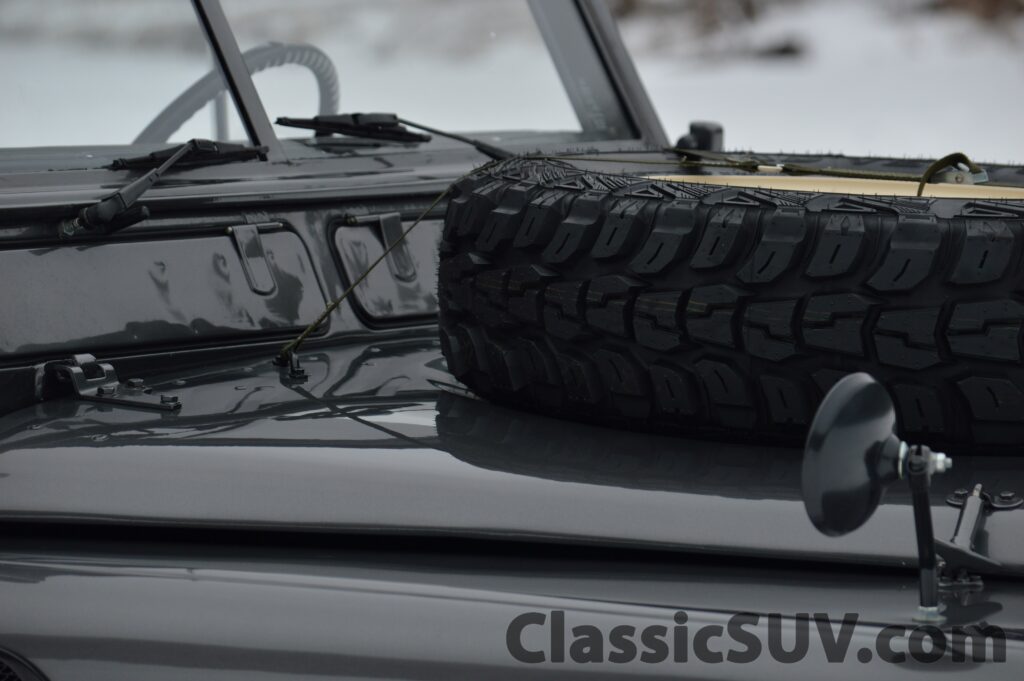 • Additional Features: Full-size spare wheel, truck cab windows, safari roof.