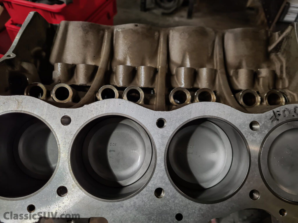 • Engine Block: Machined surfaces, honing, lining, leak test. New camshaft, valve lifters, camshaft bearings. Crankshaft polished and balanced. New bearings, oil pump, reduction valves, and seals.