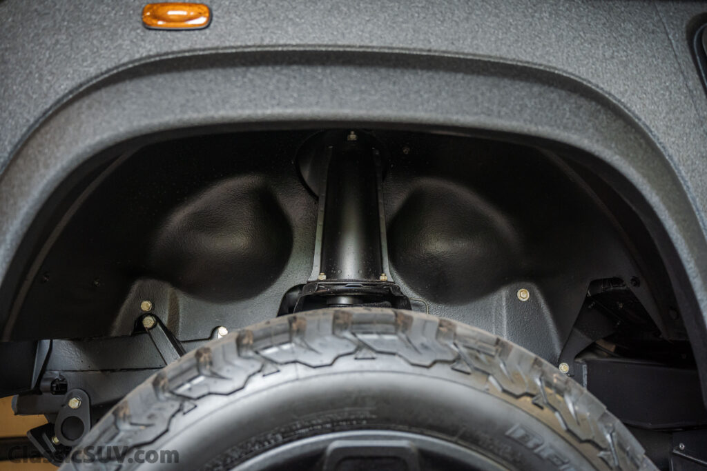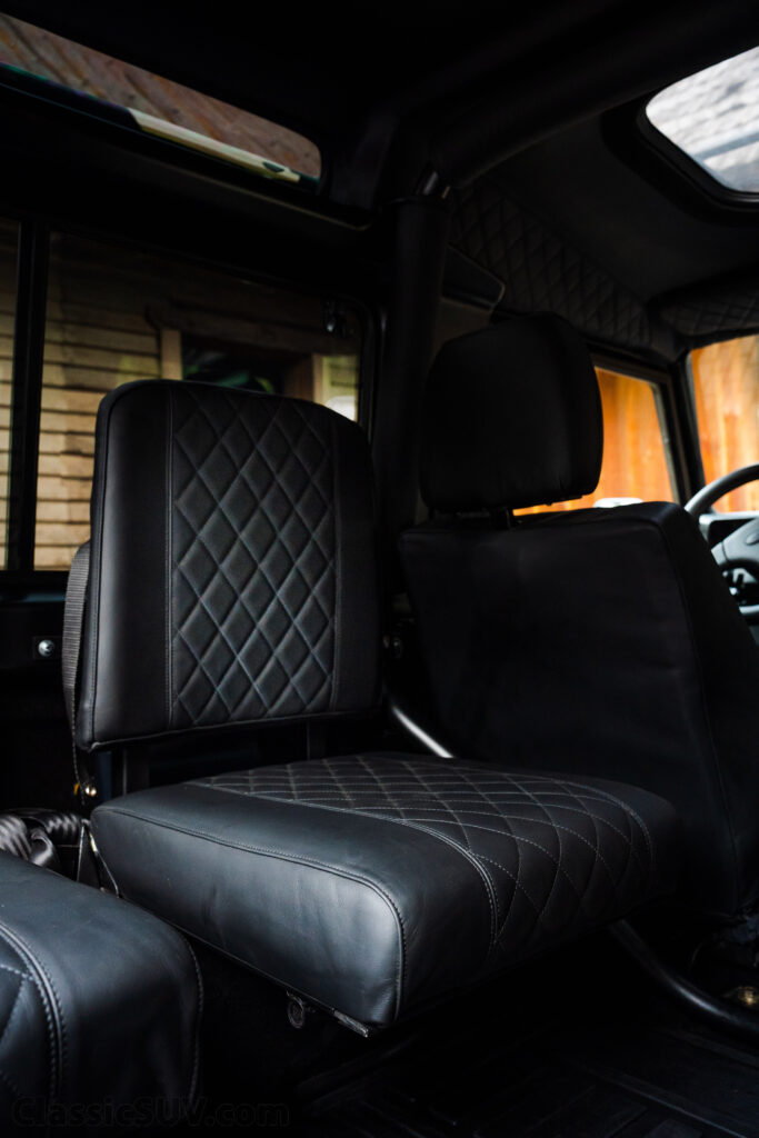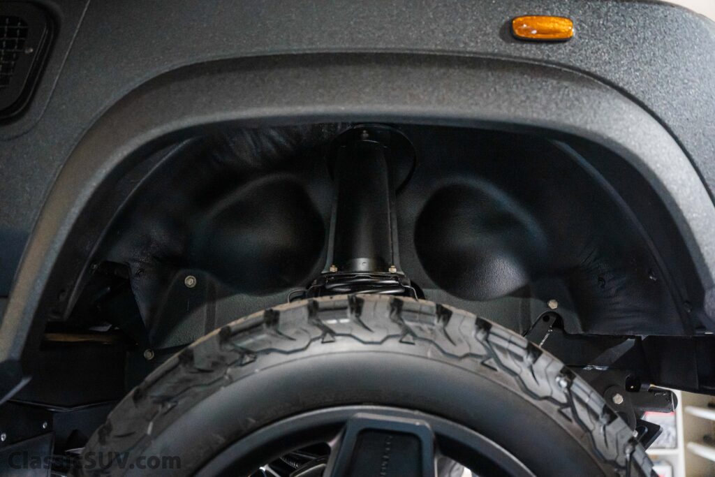 Not Just a Restoration – A Custom-Made Project: This NAS Land Rover Defender is more than a simple restoration. It’s a labor of love that involved countless hours of customization, from the Khan body kit to the premium interior. Every detail has been enhanced to create a unique, high-performance vehicle.