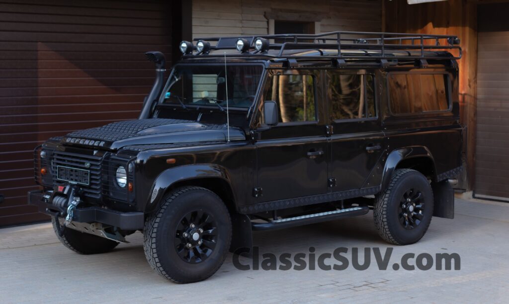 The Fully Restored Land Rover Defender 110 Black is a 4×4 off-road vehicle featuring classic Land Rover styling with 16-inch wheels and iconic Land Rover lights. It includes a manual transmission and premium interior, fully restored for durability and top performance. Ideal for off-road adventures and daily driving, this Defender combines classic design with modern reliability.