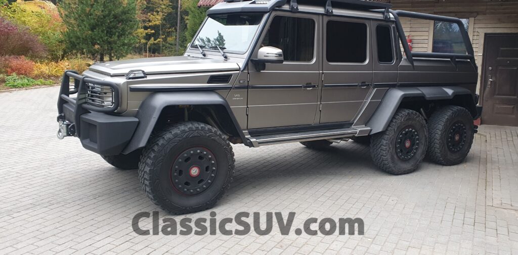 The Mercedes G63 AMG 6×6 is a rare, high-performance off-road vehicle. Designed as a 6-wheel drive SUV with portal axles, it delivers extreme off-road capability combined with luxury. The vehicle features a powerful AMG 5.5-litre V8 twin turbo engine, producing 544 hp (400 kW) and 760 Nm of torque. Its luxurious leather interior and advanced technology place it among the top luxury off-road vehicles.